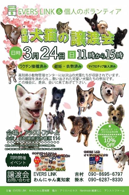 2015年秋より高知県の小動物管理センターに収容された負傷動物や殺処分予定となり譲渡引受先のあった犬、また引受先がないまま引き出した犬を一般社団法人EVERSLINKより預かり、 負傷したものについては治療を、引受先のあるものについては、健康診断・ワクチン注射・避妊去勢手術・その他必要処置・マイクロチップを装着し引き渡しを、 そして引受先のない犬については疾病や性格を治療矯正し、ワクチン注射・避妊去勢手術・その他必要処置・マイクロチップ装着をして新しい飼い主さんにつなぐ活動を始めました。